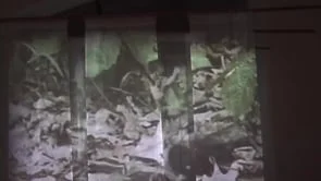 Silk hangings, projections of nature that interact with participants movement using custom software of my own design. This was showing during the 2007 Autonomous Mutant Festival in the Lassen National Forest.